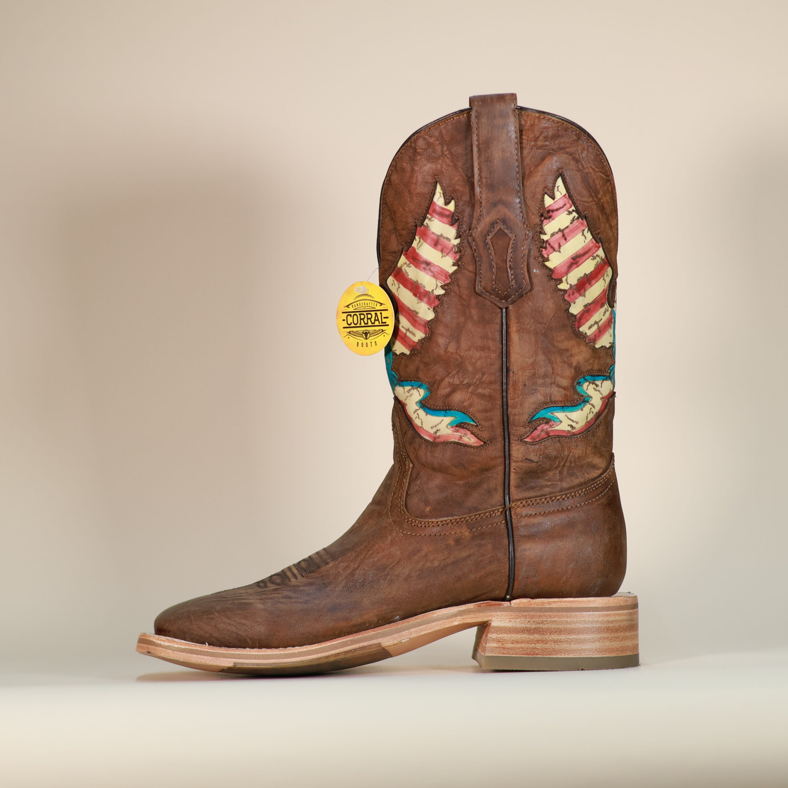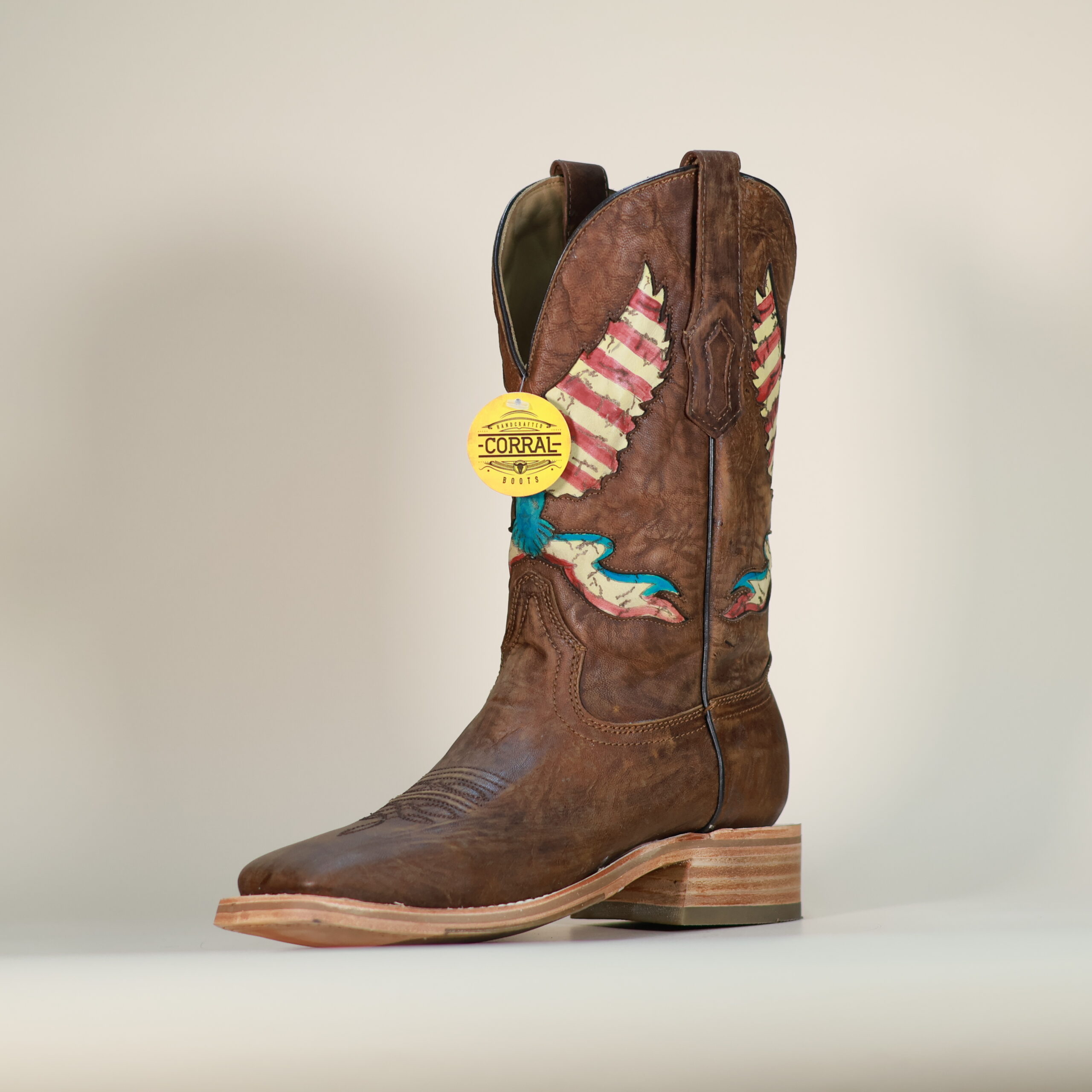 Patriotic western style with bold character. The Corral Eagle Inlay boots feature detailed red, white, and blue embroidery, wide square toe comfort, and durable handcrafted construction.