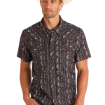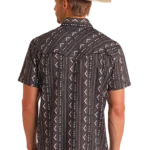 TEK Western Black Striped Aztec Print Short Sleeve Shirt